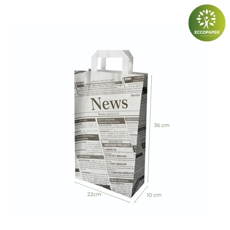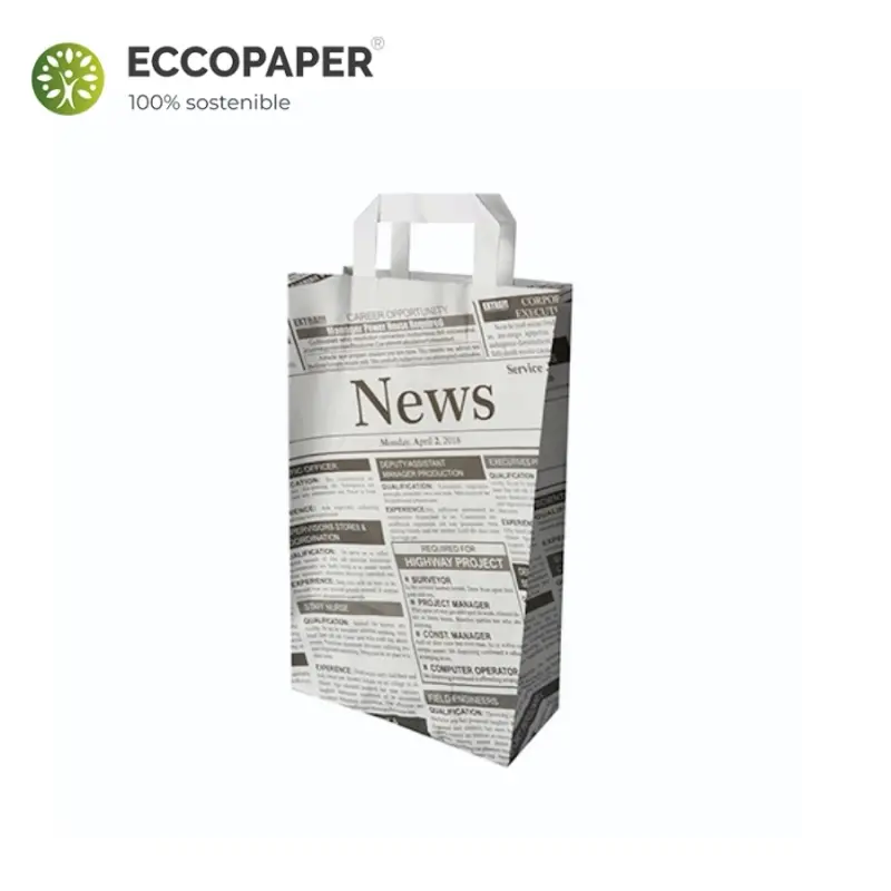 Bolsas de papel sostenible con asa plana, adecuadas para todo tipo de comercio, tiendas, fruterías, restaurantes.