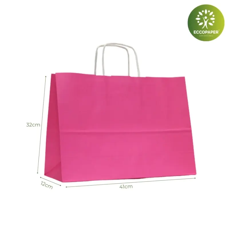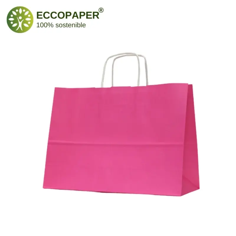 Bolsas para comercios fabricadas en papel celulosa sostenible. Es la preferida en todos los sectores por su funcionalidad y bajo coste. Disponible en varios colores y medidas.