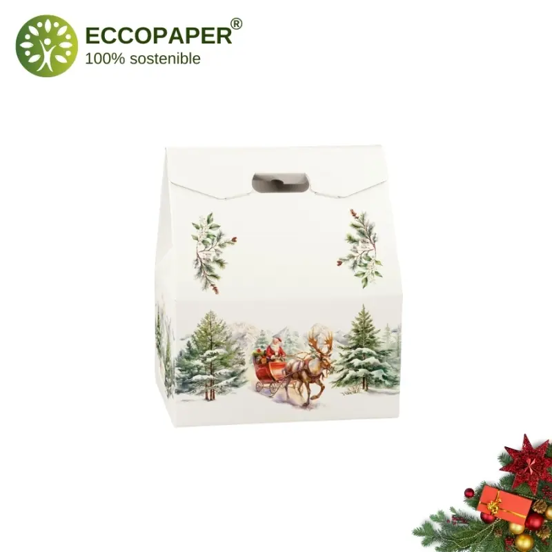 Estuche navideño de cartón sostenible, diseñado para presentar productos festivos de forma elegante y ecológica