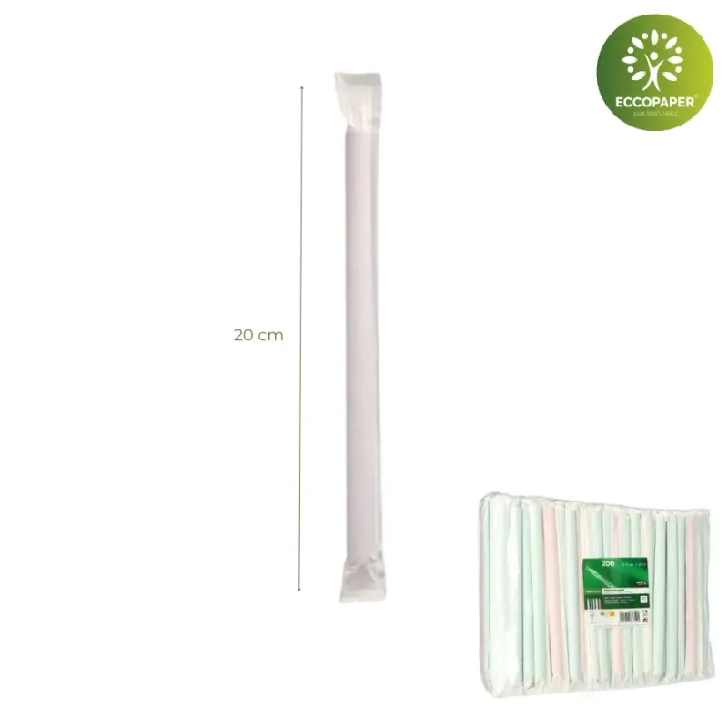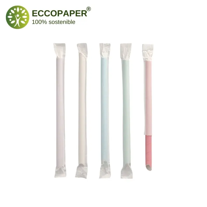 Pajitas en cartón ecológico y sostenible, envueltas individualmente, ideales para batidos y granizados