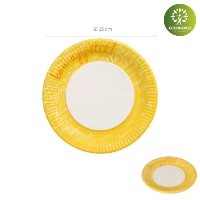 Platos de cartón decorados, perfectos para fiestas y celebraciones. Disponible a juego servilletas del mismo color