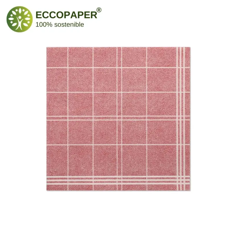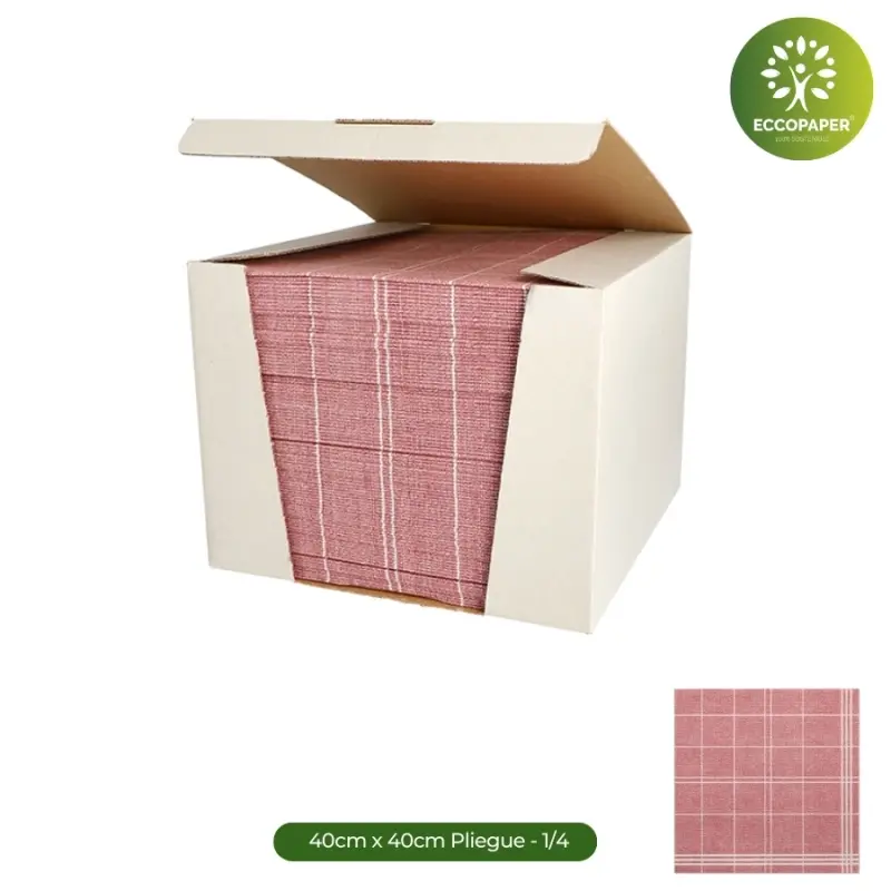 Servilletas decoradas con elegante diseño a cuadros, papel Tisú de alta calidad y tacto aspecto tela. Acompaña caja dispensadora en cartón kraft sostenible